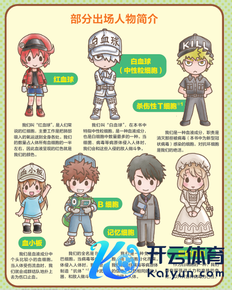 《服务细胞》中的每个细胞都被拟东说念主化。除了白细胞、红细胞、嗜酸性细胞除外,新登场的有两个蹙迫变装:B细胞、缅想细胞。