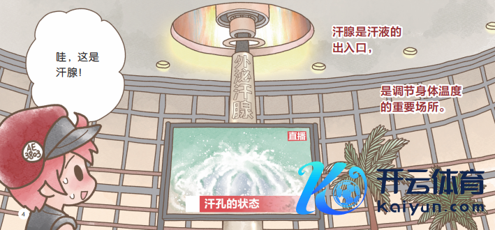 用这么具象化的图片,一下子就让孩子明白了汗腺是汗液的收支口,好像匡助调整躯壳温度。