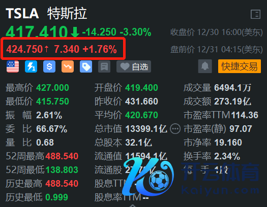 格隆汇12月31日|衔接3日下落的特斯拉(TSLA.US)盘前反弹1.76%。音讯上,瑞银发布证据注解,预测特斯拉将于1月2日公布2024年第四季度寄托量,数目约51万辆,同比增长5%,环比增长10%。瑞银的预测略低于Visible Alpha的51.2万辆的一致预期预期,但与投资者50万至51万辆的预期边界相符。瑞银强调,投资者可能会愈加关怀马斯克的褒贬开云体育(中国)官方网站,尤其是对于2025年指导和AI发展的褒贬,而非只是关怀财务筹算。
