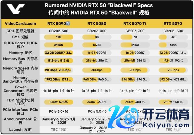 其他方面,网传 RTX 5090 将启用 170 个流惩办器单位(SMs),较 RTX 4090 的 AD102 齐备中枢减少了 11.4%,出手在 512-bit 的总线接口上。GDDR7 显存的带宽瞻望为 28 Gbps。