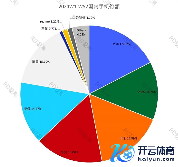 把柄RD不雅测的2024年中国智妙手机阛阓激活量数据,排行第一的依然是vivo,华为则列第二,不外第三则是出货量未进前五的,苹果、、OPPO则分列第四、五、六名。