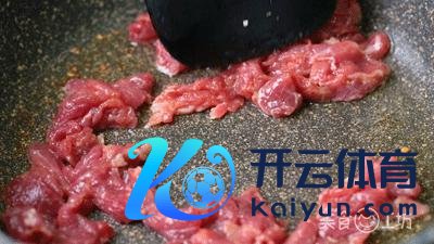 3. 锅里放油,将牛肉倒入,大火快速滑熟,加点盐调味,平底锅离火,立即盛入盘中。(这么作念的指标是减少牛肉受热时间)