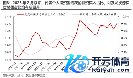 更进一步的,咱们在讲明注解《袼褙亦造步地:当下市集订价特征的念念考》建议了现时市集的短周期来回模子:2024年以来,在新催化的驱动下,常常是北上+ETF当先共同买入,随后所以两融&龙虎榜为代表的个东谈主投资者共同买入,且共同买入的高点常常也对应市集高点。凭据咱们的测算,现时市集个东谈主投资者主导的阶段可能慢慢参加相对极致的阶段:ETF和北上的买入共鸣度回落至相对低位,而两融和龙虎榜的买入共鸣度/卖出共鸣度则分袂大幅升至/降至相对高位/低位。