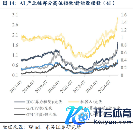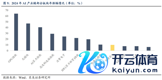 2024年A股围绕AI产业链的来回主要集中在外洋映射。2024年的第一波AI行情始于春节后,外洋Sora的问世和NV事迹超预期组成初步催化,AI走出好意思股映射性行情;3月国产模子Kimi出圈强化国产AI“追逐”逻辑。第二波行情始于11月初外洋AI诳骗事迹增长下的映射以及AI Agent新进展提振,随后豆包出圈、OpenAI 12场发布会等催化下,AI诳骗板块走强。从全年维度来看,好意思产业链映射影响下,GPU、光模块指数涨幅跳跃,年涨幅差异为64%、47%。