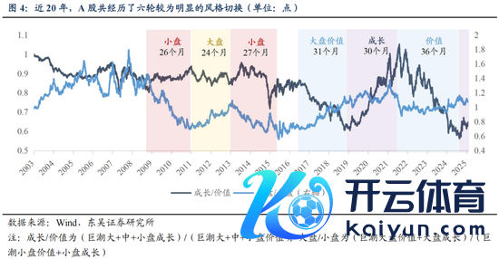 第二层级:作风轮动。近20年,A股共履历了六轮较为显明的大级别作风切换。2008年前,A股的作风特征不甚显明,大/小盘及成长/价值股的收益施展更偏趋同,分化有限。2009至2019年时代,大小盘分化显明加大。2017年以来,跟着外部需乞降利率波动性擢升,里面需乞降利率波动性裁汰,A股受好意思元周期影响加大,作风轮动的锚渐渐从国内经济成分切换至宇宙流动性成分,成长/价值作风的轮动尤为权臣,A股先后迎来了2016-18年的中国版“漂亮50”行情、2019-21年核心钞票行情和2022-24年的高股息行情。