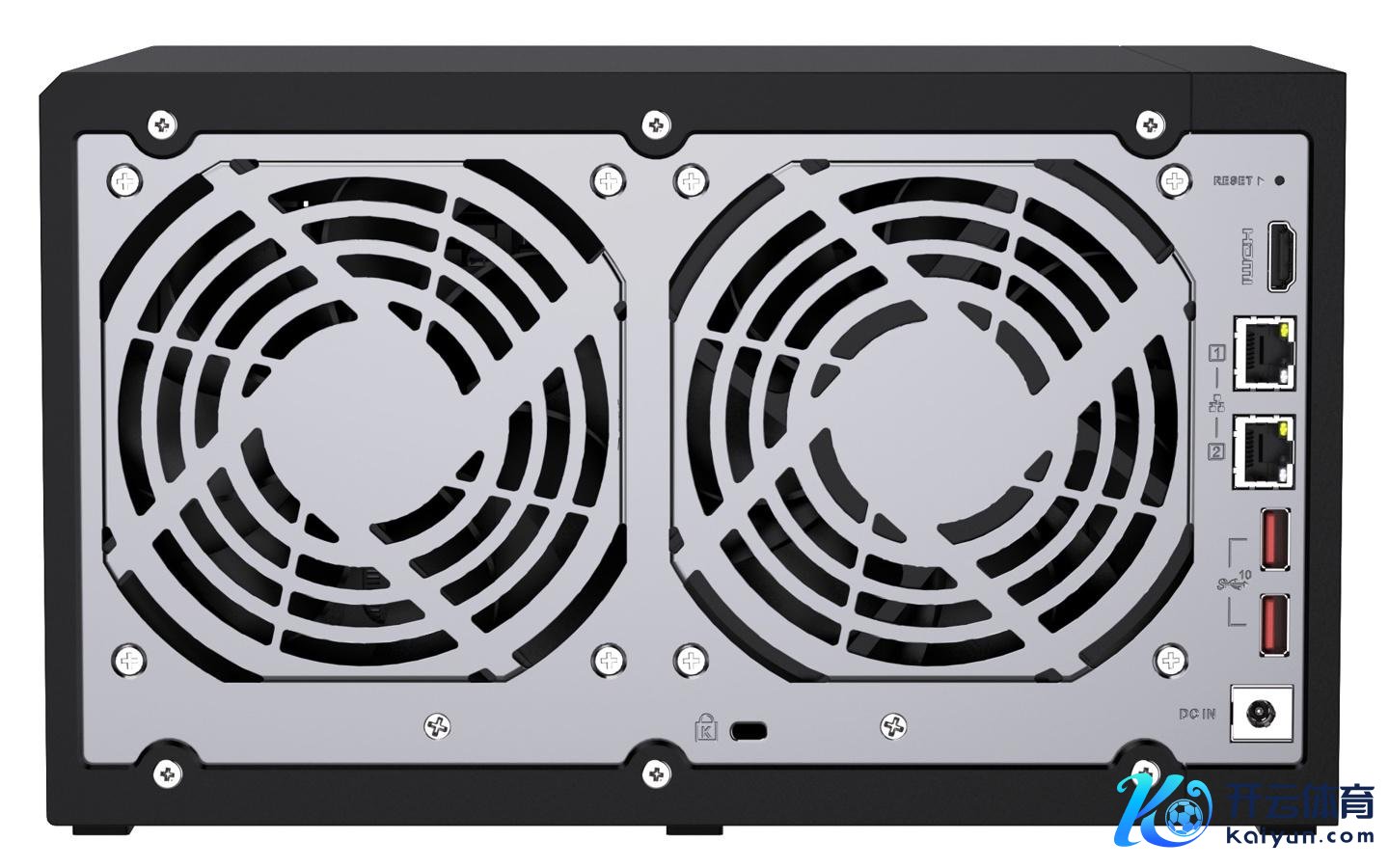 QNAP QuNAS 剿袭 DC 供电,提供 4 / 6 / 8 个 3.5 英寸 SATA 硬盘位和 2 个荒谬的 M.2 PCIe Gen 3×1 NVMe 固态硬盘位,配备 2 个 2.5GbE RJ45、2 个 USB-A 10Gbps、1 个 USB-C 10Gbps、1 个 HDMI 2.1 4K@60Hz。